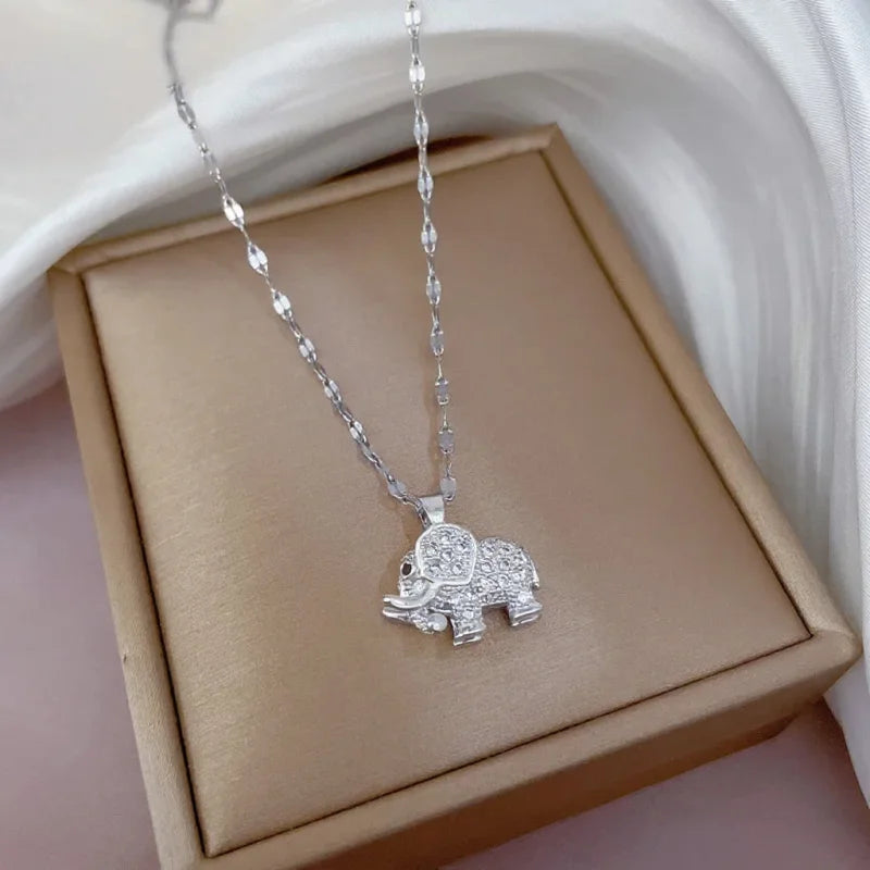 Le collier pendentif éléphant argenté incarne la sagesse et la prospérité. Son design raffiné en acier inoxydable et zircon, associé à une chaîne popcorn délicate, en fait un bijou intemporel qui sublime toutes vos tenues.