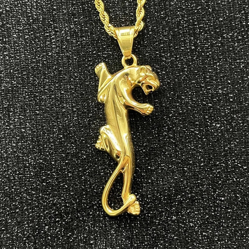 Fabriqué en acier inoxydable 316L orné de strass, ce collier ne se décolore pas, ne rouille pas et ne provoque pas de réactions cutanées. Son pendentif panthère de 65 x 25 mm reflète un savoir-faire précis et une allure luxueuse.