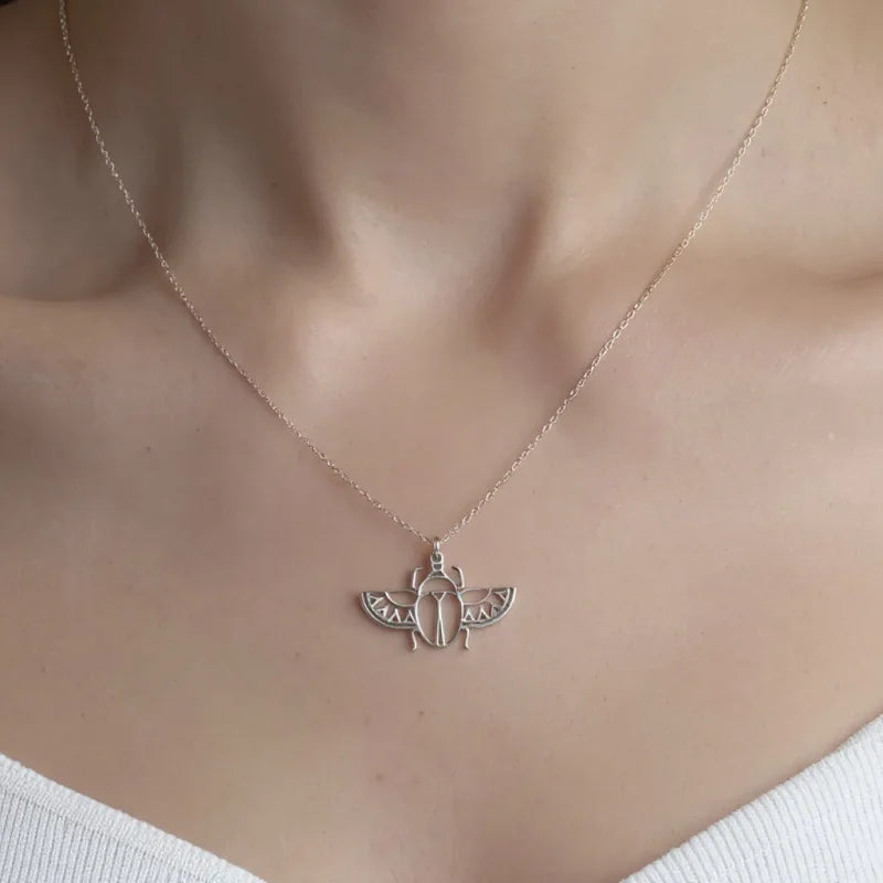 Dans la mythologie égyptienne, le scarabée représentait la course du soleil et l’énergie vitale. Porter ce collier revient à afficher un talisman porte-bonheur qui accompagne vos projets et inspire la confiance. Plus qu’un simple bijou, c’est une pièce qui relie beauté et signification.