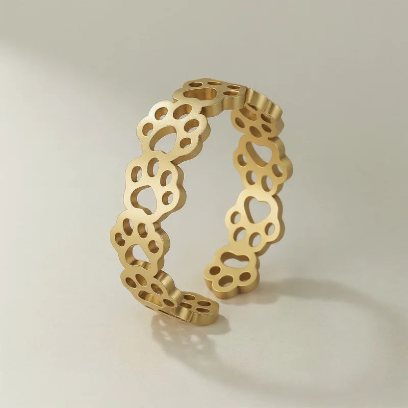 Inspirée par la tendresse des félins, cette bague illustre l’amour et la complicité. Sa teinte dorée met en valeur le motif patte de chat, transformant ce bijou en un accessoire unique qui attire immédiatement le regard.