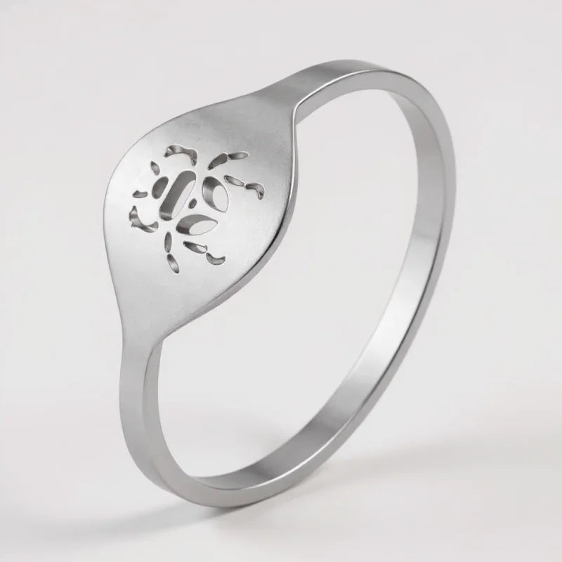 La bague Scarabée Égyptien rend hommage à l’iconique symbole de protection et de renaissance de l’Antiquité. Conçue en acier inoxydable plaqué argent, elle séduit par son design géométrique raffiné et son éclat moderne. Un bijou tendance qui unit histoire et élégance.
